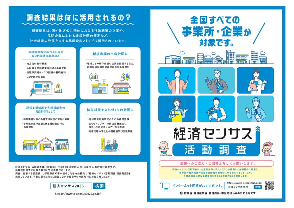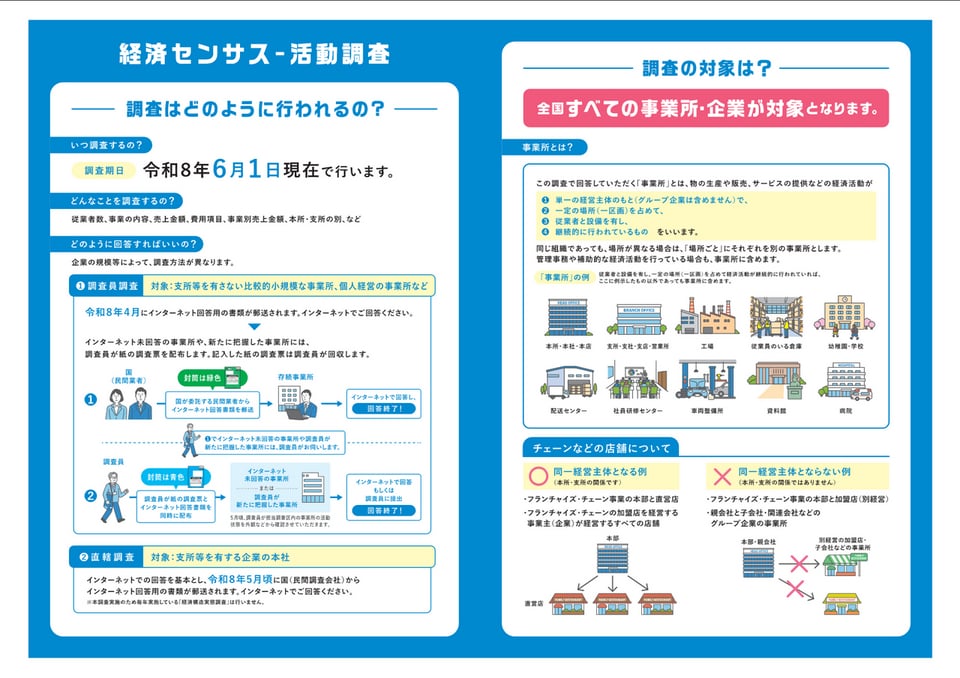 令和8年5月に総務省及び経済産業省は、令和8年経済センサス-活動調査を実施いたします。