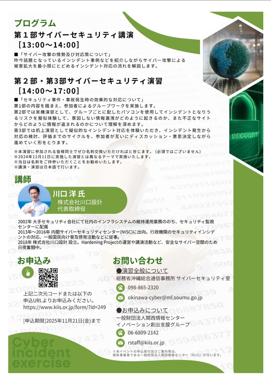 【総務省沖縄総合通信事務所】「サイバーインシデント演習in沖縄」について~セキュリティのインシデント対応を体験しませんか?~