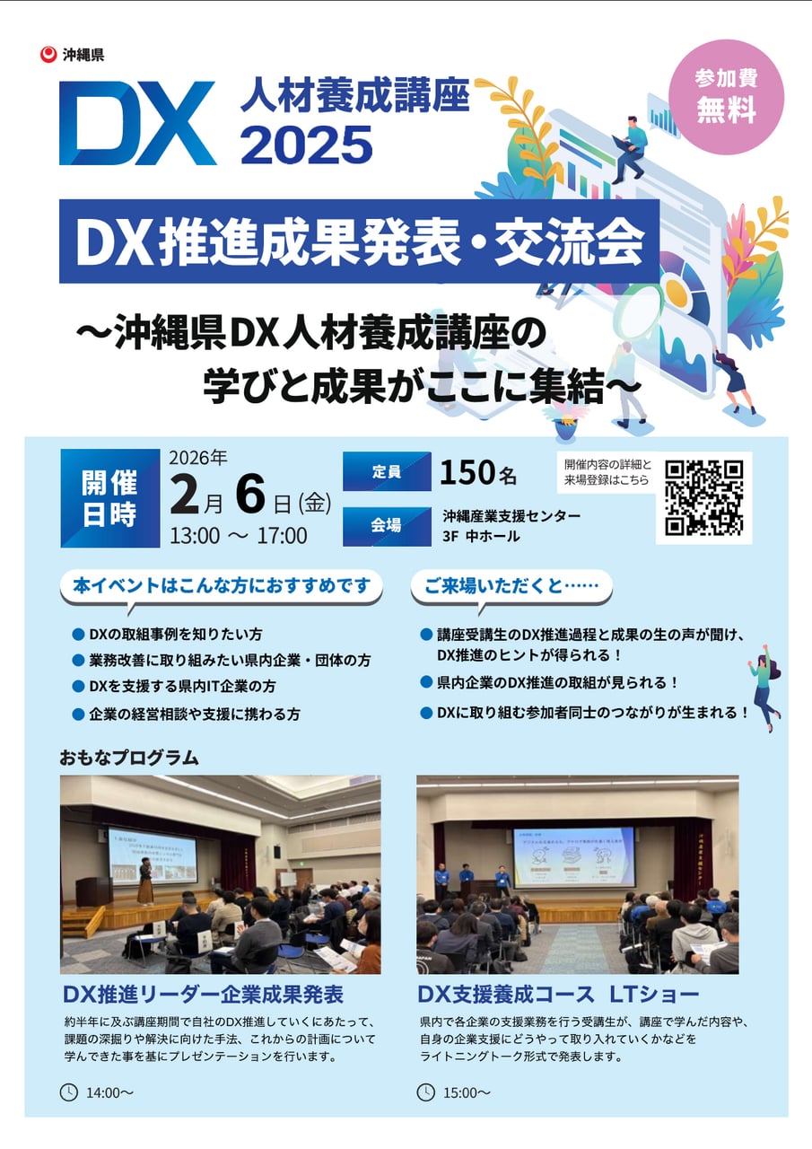 沖縄県DX人材養成講座「DX推進成果発表・交流会」への来場登録はこちらから▽