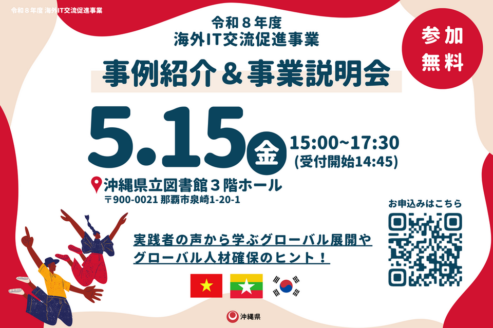 令和8年度「海外IT交流促進事業」事例紹介&事業説明会のご案内がありましたのでお知らせいたします。