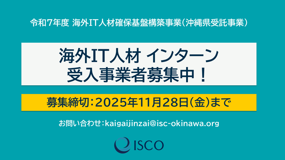 ISCOでは、沖縄県より令和7年度海外IT人材確保基盤構築事業を受託しております。